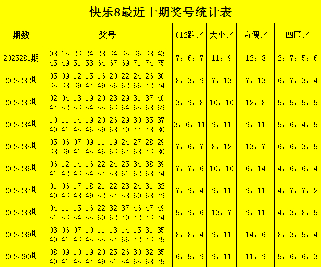 福彩自负8第2025290期开奖回归:08 09 10 19 20 25 26 30 32 35 40 41 45 47 49 51 54 65 68 75,其中奖号012路比为6:5:9,和值为749,跨度为67,奇偶比为11:9。